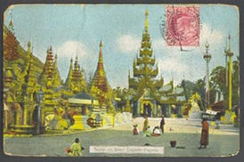 <<<-- An old postcard illustrating the interior compoun of the Shedagon Pagoda during the early '20.And it was during this stage, Alaungpaya, the Burmese King who drove the Pegu forces out of northern Myanmar by 1753, and by 1759 he had once again conquered Pegu and southern Myanmar while also regaining control of Manipur. He established his capital at Rangoon. In 1760. This was the first time the Burmese faced to faced war with Siamese in Ayutthaya. The Thai defended by reallocating the capital city to the current Bangkok after a brief conquer by the Burmese but Alaungpaya died of smallpox while invading the Ayutthaya kingdom (thus ending the invasion). The conflicting commercial interest and political threat made the British and Siamese joined forces against it in 1824 - this was refereed as the First Anglo-Burmese War (1824-26), the British won. The Second Anglo-Burmese War burst in 1852 and followed by the Third Anglo-Burmese War. in 1885. Britain made all of Burma a province of India in 1886 with the capital at Rangoon. The early twentieth century saw the British separated Burma from India in 1937 but the outbreak of World War II where Japanese were routed from Burma in May 1945 and Burmese independence was gained on January 4, 1948. reference: History of Ancient Burma
