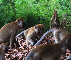 The recent trip to ths taoist temple, I had a chance for a chat with some shops owner as well as this Chinese Art painter who was assigned to retouch the colourful scruptures on temple exterior. The photo of the monkeys at play was taken at the rear cave opening. Seen with an explosive view of one of them (top and Bottom of this page) shows it is the most common specie found in Peninsular Malaysia. They looks wild (not so sure if they are tamed) but it is good to keep a safe distance from them (esp. those who carries Cameras or Video etc.) hehe ...