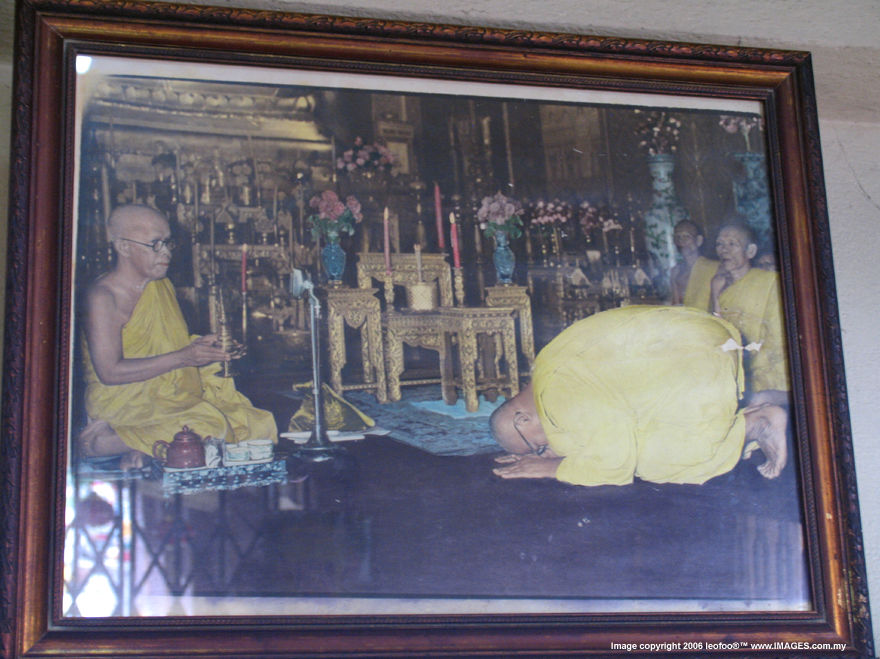 Wat Buppharam Thai (Siamese) Buddhist Temple locates slightly away from the more popular Wat Chaiyamangalaram and Dhammikarama Burmese Temple but it is still considered to be located at Pulau Tikus area (Address:- No. 8. Jalan Perak, George Town, Penang Island, Malaysia. This relatively small but old Thai Buddhist temple complex was built in 1942 by a Thai Buddhist monk named Phothan Srikheaw, who was regarded as the first Chief Abbot of this temple. The founding father of the temple is honored by a gold leaf covered image, together with the 2nd, 3rd and 4th Chief Abbot of this temple, located at the front portion, near to the main building of this temple.