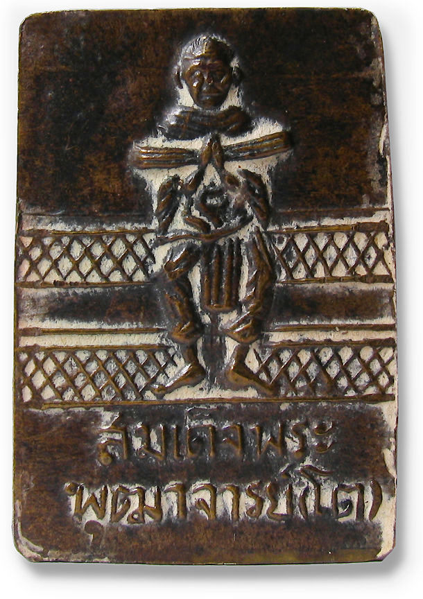 <<< ---Credit: Uncle Wichien. The picture shown at the left hand side is an aged WRK bronze metal-plate of a Soomdej with the Guru, Phra Bhudhacharn(Toh) at its rear section. Front View (150k) | Rear View (118k). Note: This WRK Medallion together with the LPP were given to me as a personal gift on Wesak Day, 2004.