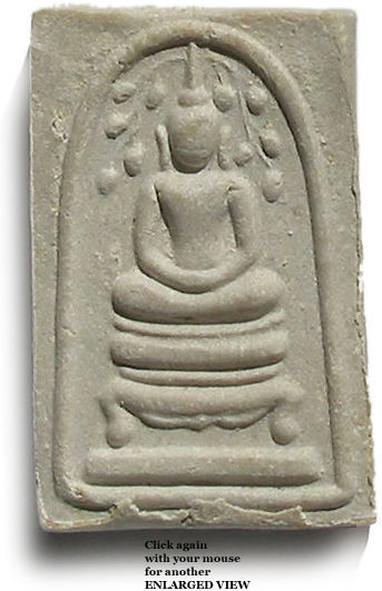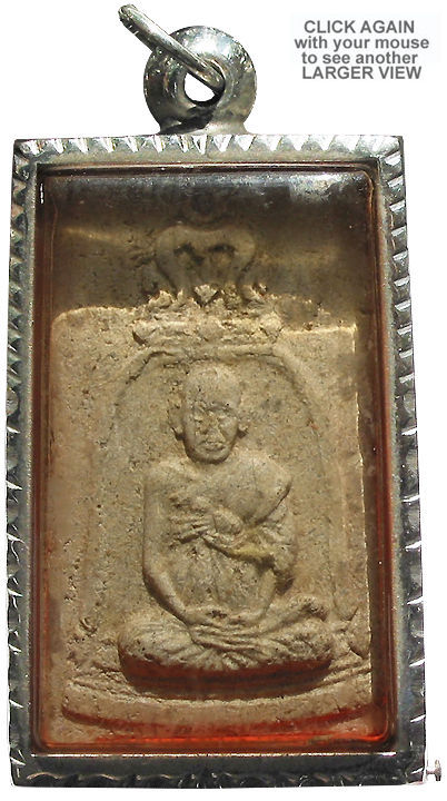 section which may serve more specifically with your objective.NOTE:- Virtually ALL the images appear in this site have two dimensions in their respective display. I think most seasoned Thai amulet lovers probably possess a pair of hawk eyes second to the Jews in the diamond trades, so, it is the intention to provide a LARGER view of each thumbnail in order for everyone to enjoy, authenticate or verify their originality. The technique to fully explore the convenience of this display system is - even when the larger view appears on the browser, you should use your mouse to click again to see the actual explosive view. Please bear with the slower download time of those explosive views. Enjoy.