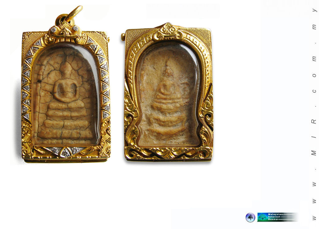 section which may serve more specifically with your objective.NOTE:- Virtually ALL the images appear in this site have two dimensions in their respective display. I think most seasoned Thai amulet lovers probably possess a pair of hawk eyes second to the Jews in the diamond trades, so, it is the intention to provide a LARGER view of each thumbnail in order for everyone to enjoy, authenticate or verify their originality. The technique to fully explore the convenience of this display system is - even when the larger view appears on the browser, you should use your mouse to click again to see the actual explosive view. Please bear with the slower download time of those explosive views. Enjoy.