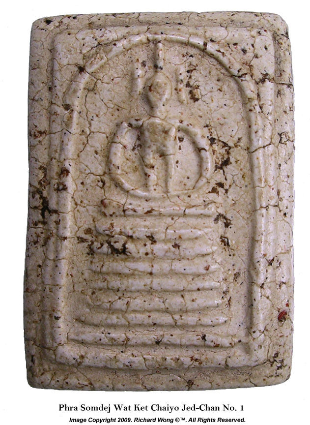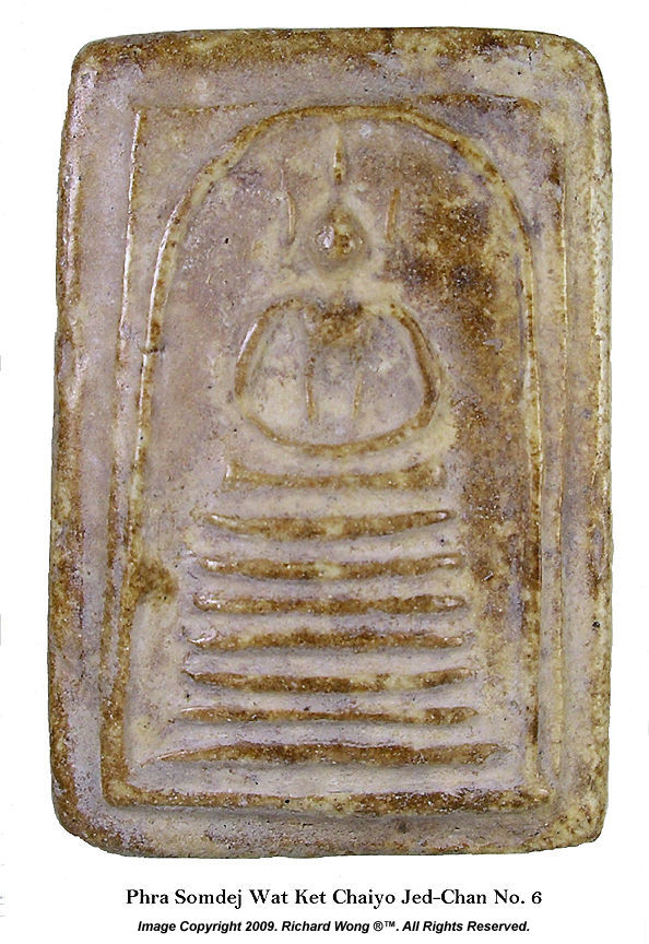 Somdej Puttacharn Toh created Phra Somdej Wat KesChaiyo for the remembrance of his mother with the 1st batch make in 2393 and follow later by another 2 batch which were all stored inside the Lord Buddha Bucha at Wat Ket Chaiyo. In total there are 3 design style that was created and claim that a total of 84,000 pims was make : 1. Phra Somdej Ket Chaiyo Hok-Chan - There are 2 moulds which is called Hok-Chan Ok-Tan and Hok-Chan Ok-Rong