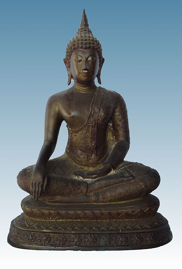"Jiang Sen", "Wu Thong" & "Sukhothai": Familiar ? Yes, because this set of three lovely medium scale images was similar to mine, they have been installed approx. 15 years ago at my partner, Mr. KW Lim® house almost immediately after Uncle Wichien® got my set readily for my house. I remembered he told me, they are the last batch where after long persuasion to the Monks at the temple before they release this set for him. The original images were a little "dusty" as they have been keeping the front desk of the temple for worshipping public to pray. These probably have been clean thoroughly before Paul shot the pictures with a Sony 717 Digital camera for me. Paul also has a collection of amulets showcased in this site. (image dimension: approx. 18 (center) & 16").