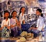 For the past few years, I have been trying, through batik drawing, to demonstrate the unique life styles and characteristics of the Malays. Very naturally, this brings local flairs into the completed works and it creates another kind of local taste.