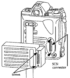 Optional Camera Equipment: KODAK Color Filter Wheel Accessory; CAT No. 130 2447. (For use only with monochrome camera backs with internal hard disks and only with Macintosh computers.) This accessory consists of a motor-driven red, green, and blue filter wheel with support electronics that enables the DCS 200mi monochrome camera model to produce high-quality color images. Sequential red, green, and blue exposures are combined to produce a full 24-bit color image. This accessory cannot be used simultaneously with an external hard disk. We recommend the use of a QB2 (see next paragraph) when using this accessory. External Battery Adapter This accessory is a replacement for the nickel cadmium battery clip in the KODAK camera back. This accessory allows the system to be used with the Quantum Battery 2 (QB2). The QB2 is a rechargeable, external power pack that extends operating time for the DCS-200 Camera. The Q82 should not be used to provide power to an electronic flash, because a low battery condition may occur when the flash is discharged. Schott 1mm BG-40 filter by Schott Glass Technologies Inc. Improves color fidelity under tungsten lighting. These filters must be cut for screw mount holders (by Tiffen), can cut and mount these filters in any lens mount you specify.Accessories: Focusing screens. Custom focusing screens for the Nikon N8808s camera can be produced by Maracle Industrial Finishing Company, Inc., 39 Commercial Street, Webster, NY 14580,. telephone 716-872-5100, fax 716-872-0285. Pelican Pro Case 1550. A hard shipping case for the DCS- 200 Camera. Available from Bristol Case Company, 34 Elton Street, Rochester, NY 14607,,1-880-343-3408. Electronic Flash and accessories; Extra lenses for the Nikon N8808s camera. Close-up accessories. Nikon remote control accessories; Finder accessories. Batteries: Kodak recommended only nickel cadmium (NiCad) batteries should be used with the KODAK camera back. In an emergency you can use six matching non-rechargeable alkaline batteries, although their life will be shorter (30-40 images) as compared to a fully charged NiCad batteries which can deliver approx. 100-200 images). Please note that: Do not use the AC battery charger adapter while alkaline batteries are in the KODAK camera back. Do not use cables other than those supplied with the DCS 200 Camera which includes the SCSI cables, except that the Nikon remote release cord.