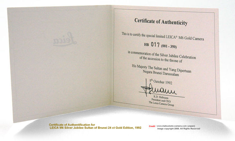 LEICA M6 Gold Sultan of Brunei Silver Jubilee Edition was only confined to this particular