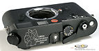 Top and bottom plate views of a Leica M6 Partner-Aktion rangefinder camera model, 1996