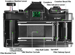 Eyepiece Shutter: Lever Activates the viewfinder blind to shut out all light that may affect the exposure.