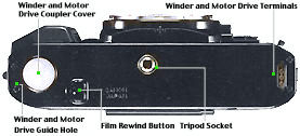 Battery Chamber Cover/Finger Grip: Houses a 6V silver oxide battery to power all camera circuits.