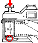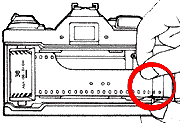 The back cover of this camera has a memo holder. It conveniently holds the end of the film box as a reminder of the type of film in use and the number of exposures.![]()