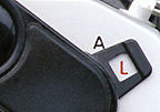 While pressing the lock release button, slide the film speed setting lever until the film speed of your film is aligned with the green index. This is necessary for getting correct exposure.