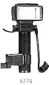 For the easiest possible flash photography with the AE-1 PROGRAM, Canon offers nine Speedlites. With an FD lens set to the "A" mark, the shutter speed switches to 1/60 sec. and the aperture to the auto aperture set on the flash automatically when the pilot lamp glows. After shutter release, the camera switches automatically to normal AE photography until the pilot lamp glows again. Canon's most powerful Speedlites, the 533G and 577G each use a quick-release grip and a separate sensor which, seated in the camera's accessory shoe, ensures correct exposure even when the flash head is tilted or swung. The A-series Speedlites slide directly into the accessory shoe.