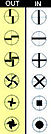 Illustrations above can be seen as various stages of development for focusing screens. From the early uneven, rough sandblasting surface to laser matte technology around the late '70 and early '80 and eventually improved to the all bright laser matte screen. The quick-focusing Cross Split Versatility is the concept upon which this novel focusing aid is based. The conventional split-image rangefinder works well with vertical lines, but is difficult to use when focusing subjects without them. The Cross Split solves this problem by dividing the image into quadrants for quick, easy focusing. Because it can be used to focus both horizontal and vertical patterns, the Cross Split is suitable for virtually any subject. Only Canon offers this type of focusing aid and has made SLR such a pleasure to use with all the lenses in production.Far left indicates various possible combinations of design the spit image in a focusing screens.