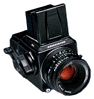 Fast manual film advance and simplified operation with all operating controls arranged by design, function from a working photographers point of view. Accessory mask that fits a rear of camera body provides choice of 2 1/4 (6x6) square or 6 x 4.5 cm horizontal or vertical format and a panoramic mask 27x55 mm. Quick coupling plate with 1/4 in. and 3/8 in. tripod socket., and capability to extend 501C system with CF lenses, film magazines, viewfinders, focusing screens and other accessories.