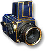 Hasselblad 503CX CF "Golden Blue" model, 1941-1991 50th Anniversary model. 24K gold plated kit/blue leather. Only 700 made