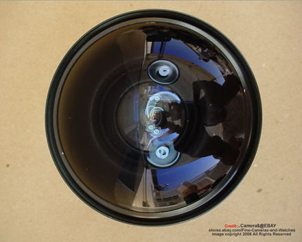 Credit: Image courtesy of camera$@EBAY®. He also operates a popular EBAY STORE where he often lists many used RARE pieces of Nikon, Leica and other old classic photo equipment, Images are also well taken for visual confirmation for buyers - he is also one of my favorite bookmark Ebay dealer. Image copyright © 2006. All rights reserved. Please respect the visual property of the contributing photographer.The nature of the lens design is tricky enough. So if you don't owned a professional F-series models or the older Nikkormat SLR cameras where all these bodies have a mirror lock up feature, please don't attempt to mount this lens onto your camera. This lens has a similar operational method and physical appearance like some of the early Nikkor fisheye lenses e.g. Fisheye-Nikkor 6mm f5.6, Fisheye Nikkor 7.5mm f/5.6 and the OP Fisheye-Nikkor 10mm, the back portion of the lens extends so far into the camera body that the camera mirror must be raised and locked it upward in order the lens can be mounted onto the camera body. Further, it requires the use of an external optical finder for picture composing (it is a fixed focus lens). The early version may has a simple finder while later ones uses the DF-1 finder which was used on the flash mounting shoe at the side of the camera body. If the mirror has been raised and locked upward, how would a photographer sees anything through the camera's viewfinder eyepiece ? Yes, once the reflex mirror has been locked upward, It will be totally blackout inside the viewfinder and that is why these lenses have a companion attachment finder which comes as a standard package. The Fisheye Nikkor lenses introduced in later stages have a different optical design which patched this drawback and viewing is reverting back to normal when they are attached to any Nikon reflex camera without any interference to viewing through the lens (TTL).