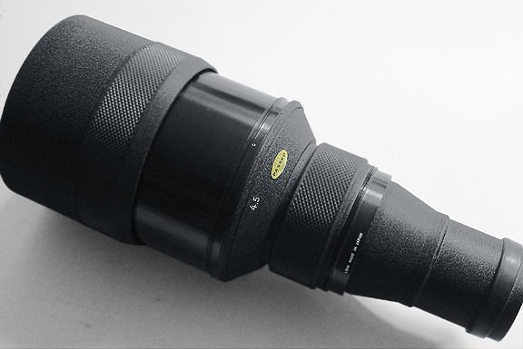 $398 list (1959)After the reflex SLR F-mount 600mm f/5.6-22 Nikkor-P Auto, 880mm f/8-22/64 Nikkor-P Auto, 1200mm f/11-64 Nikkor-P Auto, Nikkor introduced the 400mm f/4.5 Nikkor-Q Auto sometime around 1964/65. It was meant to be the substitute for the 350mm f/4.5-22 Nikkor-T Preset specifically designed for the reflex Nikon SLRs. This two parts 400mm telephoto lens was considered as an ultimate lens for nature and sports action photography during those early days. Separate into two sections, comprising the lens head and the focusing unit. The lens head was consisting of 4 elements in 4 groups, provides outstanding resolution with high contrast and good color rendition. Since the lens itself contains only optics, it must be used with the accessory focusing unit (see below illustration OR click here for MORE INFO) for focusing and automatic diaphragm control.