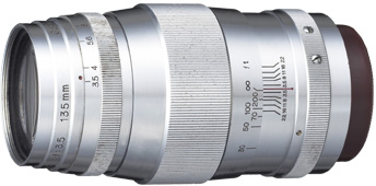 Markedted in 1952. The only 135mm f/3.5 with "Senenar" designation and only in chrome finishes. Later models from here all used "CANON". No image except for this picture deprived from Canon Museum (sorry ..).| NEXT |