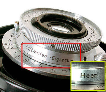 with Eagle) = Navy. Here is one version with Luftwaffen-Eigentum. Many of these lenses