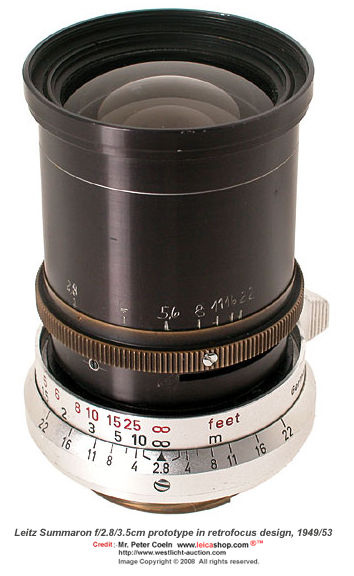 An interesting view of a prototype Summaron 35mm f/2.8 in retrofocus design which