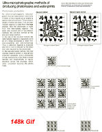 Suggestive applications/usage of Ultra-Micro-NIKKOR lenses As Nikon stated it in an early '80 sales catalogue: - Although developed primarily for the production of photomasks for high-frequency semiconductor elements (diodes, transistors, ICs and LSIs), Ultra-Micro-NIKKOR lenses were useful in other applications such as photo-etching, for production of evaporation masks by electroforming and of photommasks of filter, mesh or other minute parts and for direct projection printing of photomarks onto plates coated with photo resist. Ultra-Micro-NIKKOR lenses were also an ideal choice for making lens testing charts and producing glass plates on which complex micro-patterns for optical instruments or even inspection equipment are printed. Another important application was for ultra-micro photographic reproduction of books, company documents and literature etc. as ultra-microphotography provides practical solution for those who may require to handle vast volume of data occupying a minimal amount of space such as microform of microfilming and microfiche. The lenses were also useful for those computer systems which require ultra-high density storage of information One additional application them were for use in testing resolving power of everyday film.
