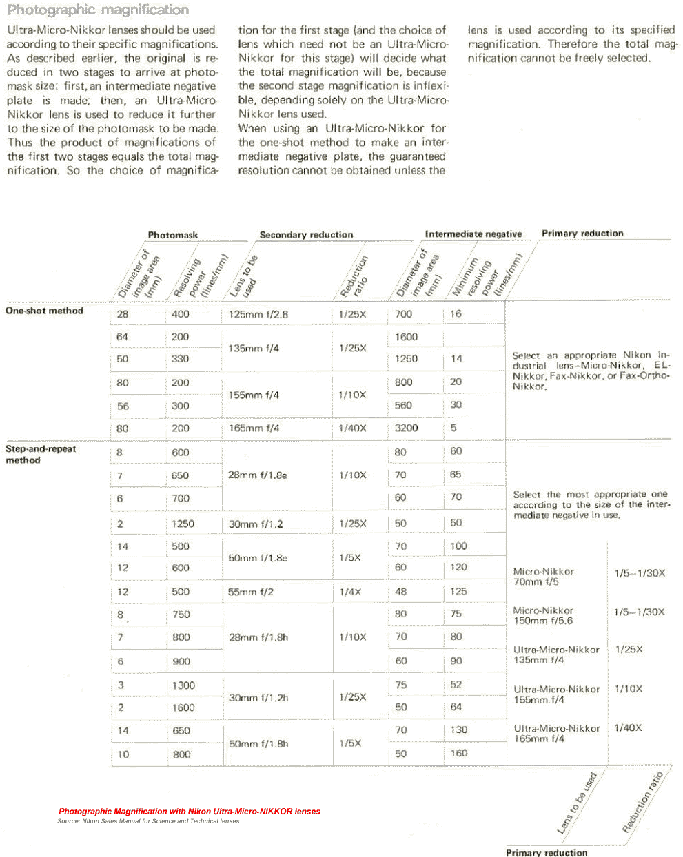 ref: Nikon Sales Manual, Industry and Science Nikkor Lenses, Technical manual for