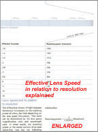 Why would it need such a high lens speed for the 225mm f/1.0, 250mm f1.0 and 300mm/1.4 ? Nikon explained :- " ..Where =wavelength used (in mm) and Fe (effective f/number), which is related to the f/number (F) under formula Fe=F(1+M) ("M" =photographing magnification). From this equation, the faster the lens speed, the higher the resolution. Similarly, the shorter the wavelength used, the higher the resolution. The chart presented the relationship between the effective f/-number, operating wavelength ( and resolving power when calculated from the formula..".