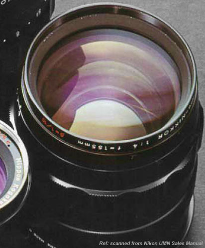1:4 f=155mm, Ultra-Micro-NIKKOR 1:2.8 f=165mm, Ultra-Micro-NIKKOR 225mm f/1.0,