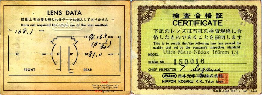 Technical Specification of Ultra-Micro-NIKKOR 1:4 f=165mm e-line type