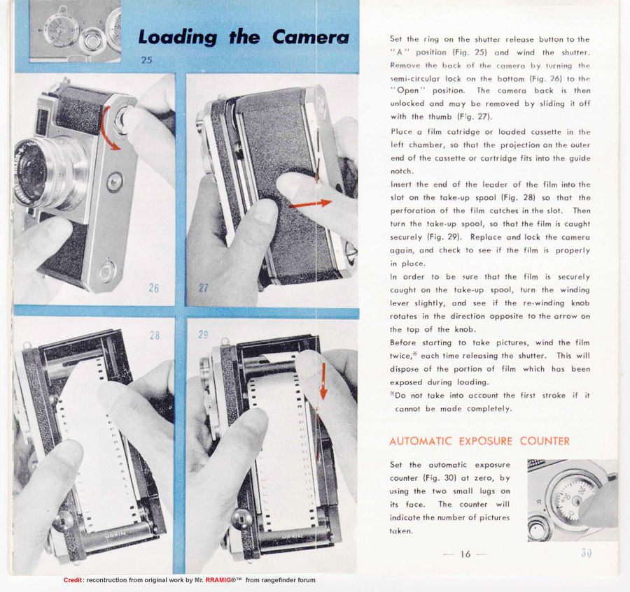 Instruction Manual Nikon S2, Page 15/16 loading film and counter reset