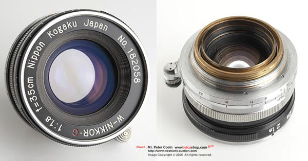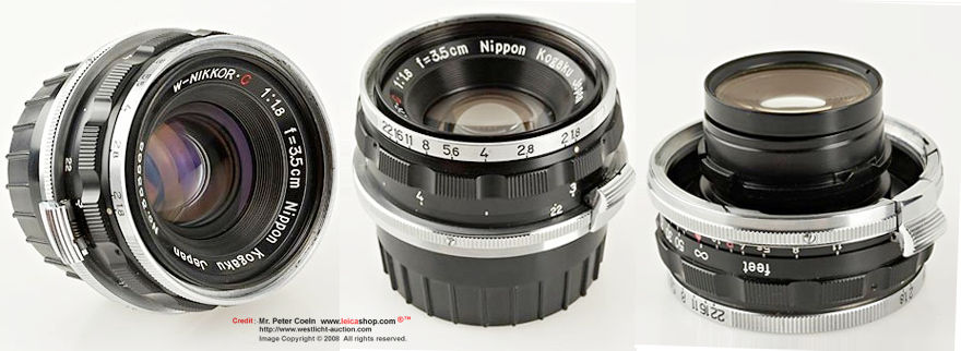compariosn between a Nikon S-Mount W-Nikkor.C 1:1.8 f=3.5cm along with a LEICA coupled screw