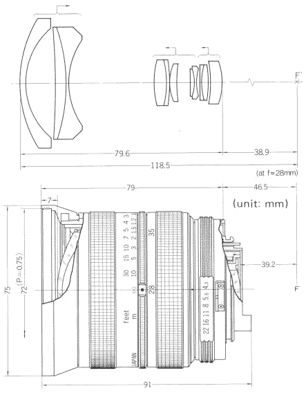 Introduced in August, 1975, this was the first true wideangle zoom lense successfully introduced by a camera manufacturer with a minimum focal length of 28mm. Although it may sound very normal to you if its basic specification offered and measures by today standard but it was considered a "technological breakthrough in optical design" during those days. As this zoom lense has spearheaded a new generation of widenangle zoom lenses that followed which previously deemed very difficult to produce with prevailing design and manufacturing standard in order to break the "theoretical limit" at focal length of 28mm and beyond.