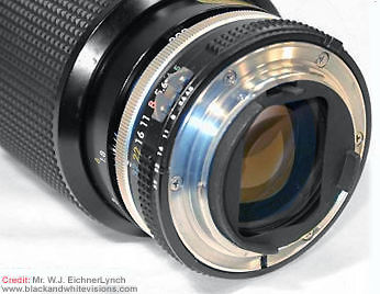 Shown is a typical modified Ai Nikkor lense with S/N 27929X.