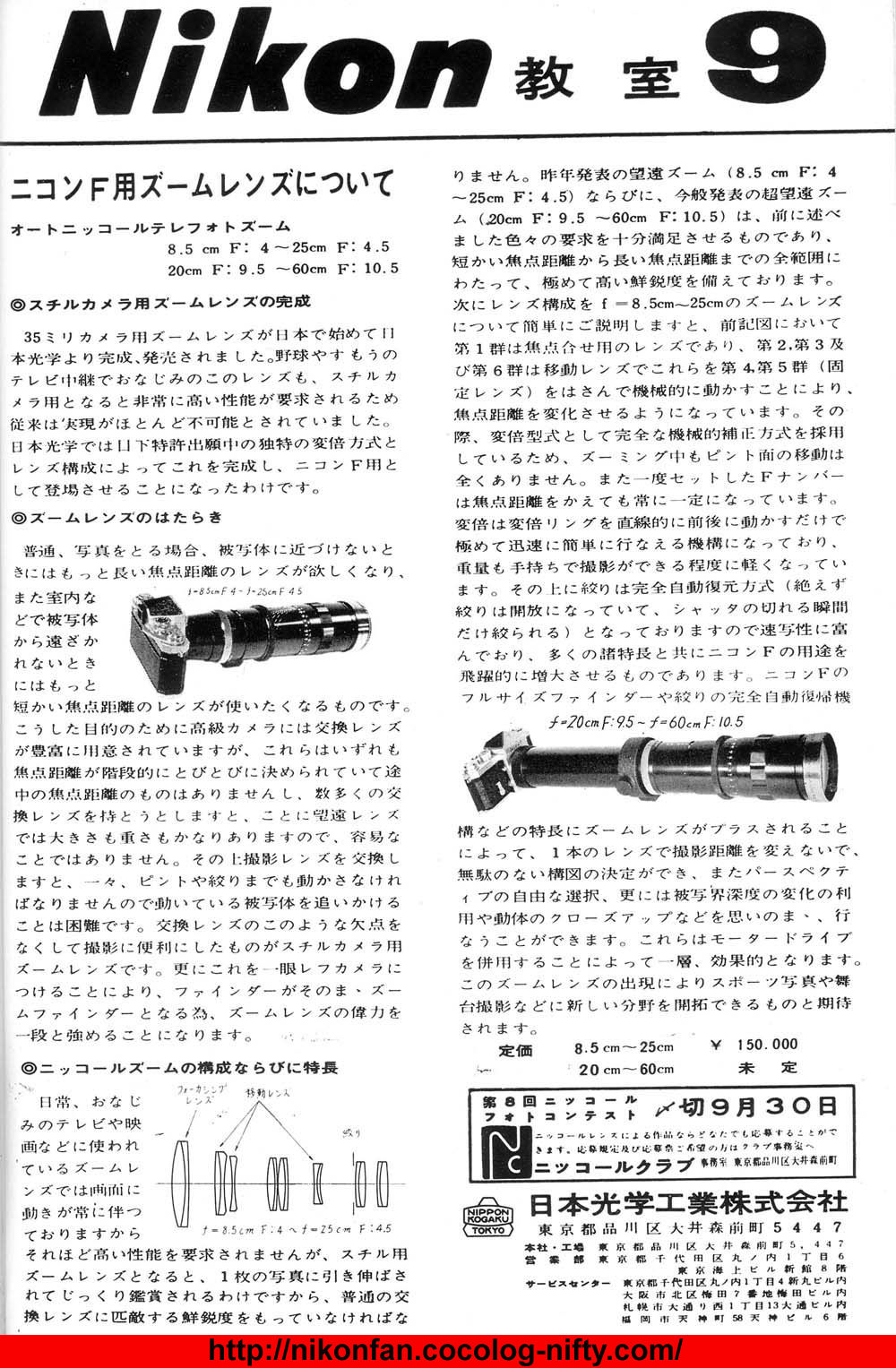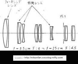 <<< --- Download a PDF file (82k) in relation to its revised optical Construction.Nikon marketing poster distributed to introduce the " Auto-Nikkor Telephoto Zoom 1:4 f=8.5cm ~ 1:4.5 f=25cm Nippon Kogaku" Super zoom:-