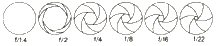 The "amount" of light allows to strike the film plus the duration (time) for the light to strike the film forms an exposure. The camera has two mechanisms to control exposure, the lens diaphragm (lens section - aperture) and the timing of the OPEN/CLOSE of the shutter curtain (camera section - shutter speed). If this confuses you, the lens diaphragm (inside a typical SLR camera lens) consists of multiple blades which can be open and closed to certain size openings, the variations in the lens opening is called aperture. The size of the aperture determines the amount of light which will fall on the film. Various sizes of the lens opening are indicated by a set /series of numbers called f/stops or f/numbers. Each f/stop represents a specific quantity of light that pass through the lens. The smaller numbers are called large f/stops while the larger numbers are called small f/stops. This is because the larger numbers represent smaller apertures and allow less light to pass through the picture taking lens. Each time you move from one f/stop to the next smaller f/stop (larger number the amount of light allowed through is exactly halved. In effect, the amount of exposure itself is also halved. Using f/2 as an example, the amount of light reaching the film will change according to f/stop as indicated below: