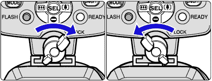 Turn the mounting foot lock lever securely until it stops. To lock the Speedlight in place when slot the flash to the camera's accessory shoe, turn the lock lever approx. 90° clockwise until it stops. To unlock, turn the lever counterclockwise until it stops.Adjust the flash head. Warning indication: If the flash head is not adjusted to the horizontal/front position, when the power is turned on, this warning appears on the LCD panel.
