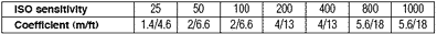 Guide number (at 35mm zoom-head position, 20°C/68°F): - 38/125 (ISO 100, m/ft), 53/174 (ISO 200, m/ft)