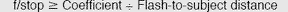 Setting the aperture Calculate the aperture by using this equation and table. To ensure the correct exposure, use an aperture smaller than the one obtained from the equation.