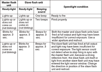 Confirming flash operation using the ready-light or the beeping sound You can confirm flash operation by checking the ready-light on the Speedlight or the beeping sound during and after shooting.