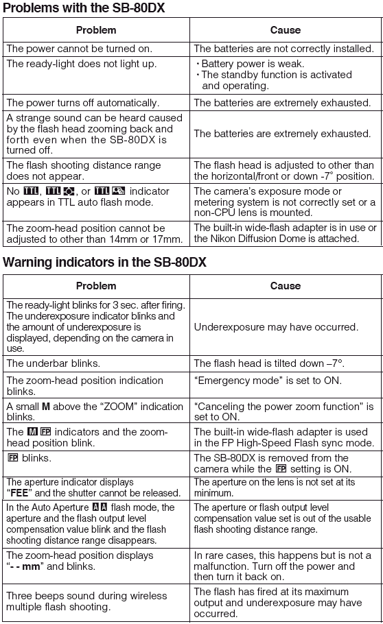 Note The SB-80DX incorporates a microcomputer to control flash operations. In rare cases, the SB-80DX may not work properly even after fresh batteries are properly installed. If this happens, replace the batteries while the SB-80DX’s power is turned on.