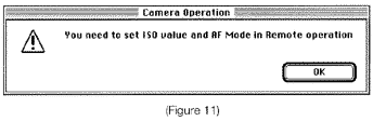 Execute only the selected programmed sequence, Select a desired programmed sequence and select "Step" in the "Tool" menu in the Program window, To shoot, depress the shutter release button, or select "AF Start/Release" in the "Tool" menu. (Shootings will be performed at the dates and times set in the program,) After starting operation, an indication appears In the window during exposures. Shooting occurs following the programmed date and time or the delay time. If the shooting date and time or delay time are not programmed, shooting is triggered by selecting "Release" in the "Tool" menu or pressing the shutter release button. ("Release" command and the shutter release button have priority over programmed shooting date and time,) Note: If the camera does not start shooting operation within 7.5 sec. after the release command is sent from the computer, all program operations are canceled To interrupt program shooting To interrupt program shooting, Select "Step" In the "Tool" menu in the Program window. -To resume an interrupted operation from the interrupted programmed sequence, select "Continue" in the "Tool" menu in the Program window. - If you perform an operation other than "Continue" in the Program window after interrupting program shooting, Photo Secretary terminates program shooting.