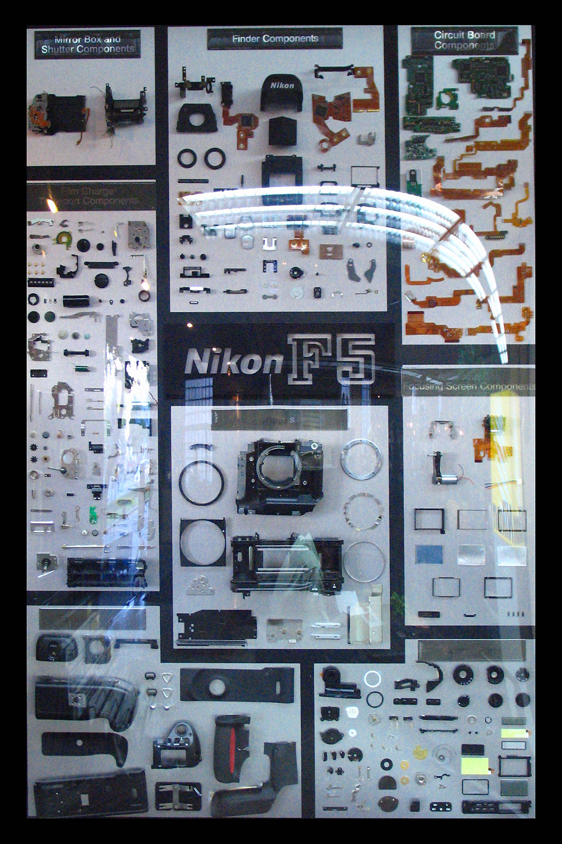 What makes up a Nikon F5 ? If you are interested, download an Explosive View ( 487k Jpeg file) of various major components made up the camera: Picture was taken in Nikon's distributor in Thailand, NIKS (Thailand) Co. Ltd.. Well, as the fron office staffs don't allow me to bring the frame down for proper shooting, so, I have to shoot at the wall mounted frame with a digital camera. Not very nice...but at least it is something, if anyone of you have a better picture of this, do send me one to replace mine.