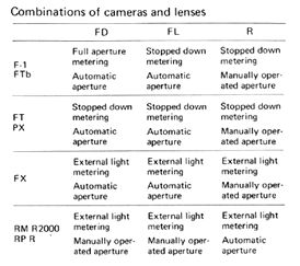 Full aperture metering in the F-1 is done by means of matching needles, and proper exposure is obtained when the meter needle matches the aperture needle after rotating the preset aperture ring or the shutter speed dial. In the same operation stopped down metering can be performed by pushing the stopped down functioning lever down.Signal Transmission and Function of the FD Lenses