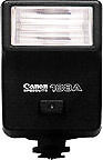 The 188A is a lightweight, compact Speedlite which is ideal for amateur use and as a second flash for the professional. Guide number is 25 (ASA 100 m). Two auto flash apertures are provided plus manual. With an adapter, the 188A gives flash coverage of the 28mm lens field.