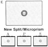 The standard screen for the New F-1. Fast, accurate focusing is achieved with the split-image, microprism, or matte field depending on the subject or your own preference.