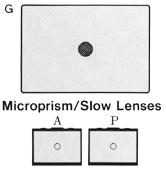 Similar to F, but for slower maximum apertures of about f/3.5 to f/5.6. Especially suited to long zooms and super-telephotos as it does not incur prism darkening. Together with the Bright Laser Matte K, the brightest screens of the system. The screen is especially effective with 50mm to 200mm lenses and dark subjects or when using small working apertures. Available in all three metering patterns. A unique screen which divides the subject not only vertically, but also in the horizontal plane. The subject is in focus when the four quarters merge to become one unbroken image. For all lenses. This screen was specially designed for high-magnification applications such as photomicrography and photomacrography when using bellows and extension tubes. Fine matte center in an overall matte field. Gradations on vertical/horizontal lines and around the edges help to determine the size of the subject. Usable with all lenses. An extremely bright screen which offers the same unobstructed, sharp image as the Bright Laser Matte J. Recommended for 300mm telephoto lenses, or longer. Also suitable for photomacrography and close-up work. Darkening is absent even when the lens is stopped down. The screen for those in the publishing and advertising fields. Engrayed 2mm crosses in the corners facilitate cropping and reproduction of A and B size materials. Well suited for applications requiring high magnifications such as photomicrography and astrophotography. The screen features a 5mm-diameter center spot with cross-hair reticle in a fine matte field. To focus, move your eye from left to right. Pinpoint focus is attained when the hairs remain in the same position on the subject.