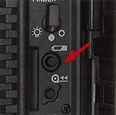 1) Open the palm wing on the side of the camera and press the battery check button ( ~ ). Battery voltage is then shown on the display panel.