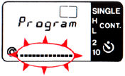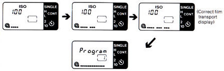 ï While the camera is advancing the film, the film transport bars (also serve as the battery check marks) will appear at the bottom of the display panel moving in sequence from left to right. If the film has not been correctly advanced, however, the bars blink after the camera has stopped. In that case, reload the film.<Automatic Setting of the Film Speed>