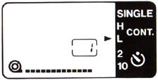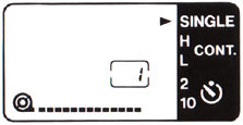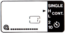 2. If you want to make the blinking ">" stop, though you continue to shoot in the LOW mode, press the film winding mode button to set the "> " mark to LOW mode on the display panel.